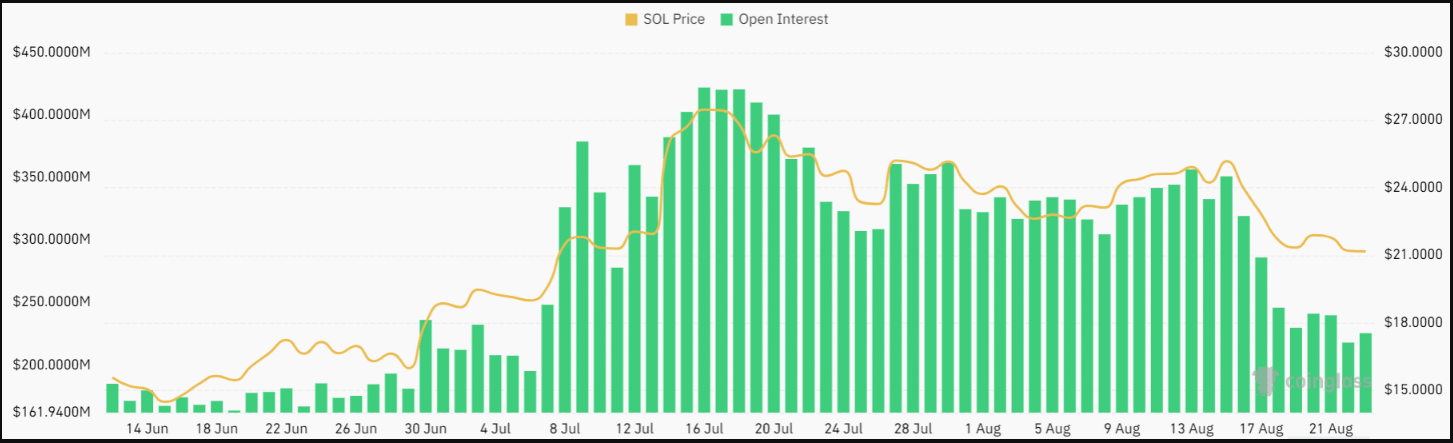 Analyzing the market structure on the 1-day chart reveals a bearish picture for SOL. The cryptocurrency recently established a lower high at $25.68 coupled with a lower low at $22.23 on August 5.