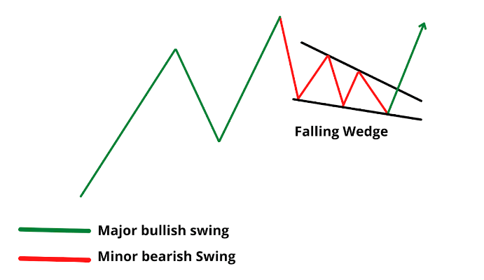 A falling wedge pattern is a common chart pattern in technical analysis, characterized by a contracting range between two trendlines that slope in the same direction. The upper trendline, representing the declining highs, converges with the lower trendline, formed by the decreasing lows.
