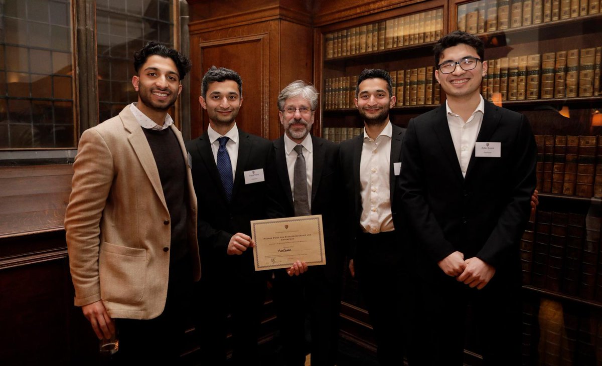 The Apta team—Shirom Chabra, Vatsal Raina, Vyas Raina, and Adian Liusie—proudly accepting the Parmee Prize in 2023.