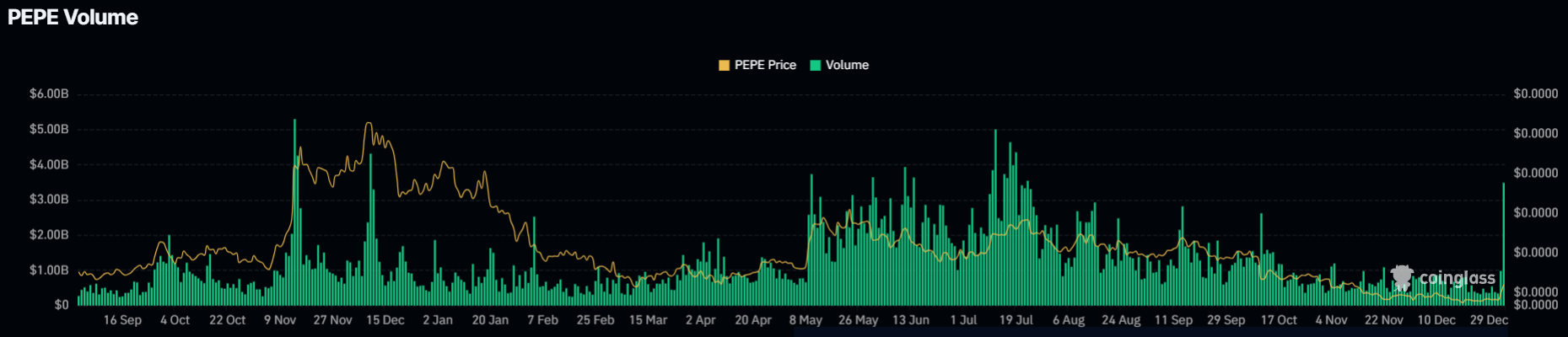 Pepe coin price jumped 17% after breaking out of a falling wedge pattern, signaling renewed bullish momentum in early January.