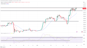 Looking at the chart, the move saw BTC briefly breakout of a long-term resistance level of $28,500.
