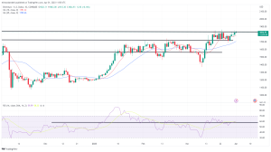 BTC/USD rose to an intraday high of $28,802.46 earlier in today’s session, which comes a day after trading at a low of $27,854.63.