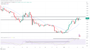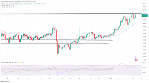 As of writing, the token is trading at $0.3774, with the 14-day relative strength index (RSI) near a resistance of its own at 74.00.
