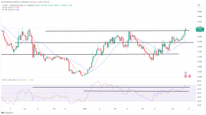 ADA/USD raced to an intraday peak of $0.4441 earlier in today’s session, after trading at a low of $0.4115 on Thursday.