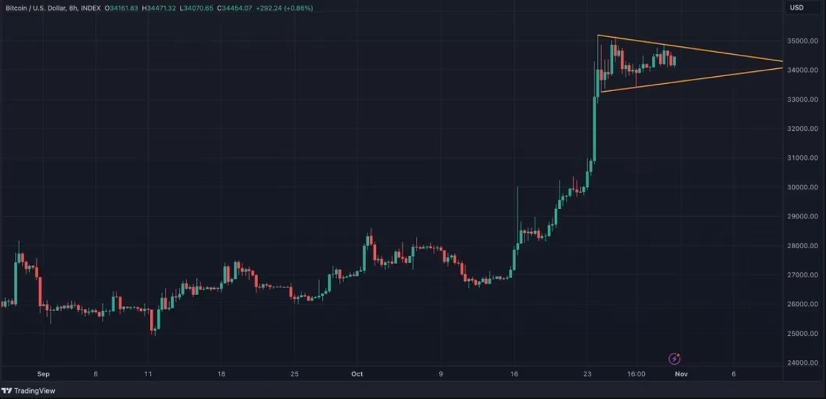 “Bitcoin is forming a triangle on the daily chart. It is generally believed that such consolidation formations will end with an upward breakout.