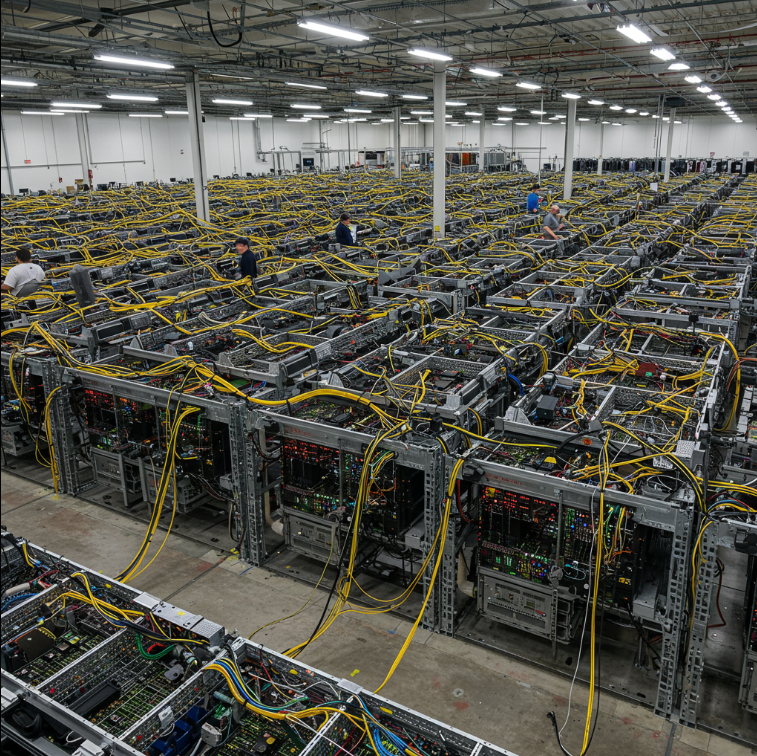A rendition of a bitcoin mining facility in Arkansas. Image generated by Gemini Imagen.
