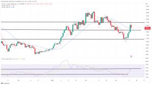 Looking at the chart, the decline comes as the 14-day relative strength index (RSI) was also unable to move past a resistance zone of its own at 57.00