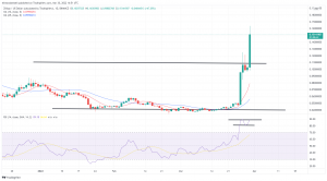 Following the news, ZIL rallied by over 200% in the past week, with today’s gains seeing prices hit an intraday high of $0.1604.