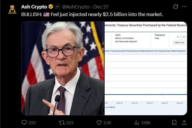Although the $2.5 billion transaction is smaller than emergency liquidity measures during stressed markets, the total liquidity provided through repos this year has become significant.