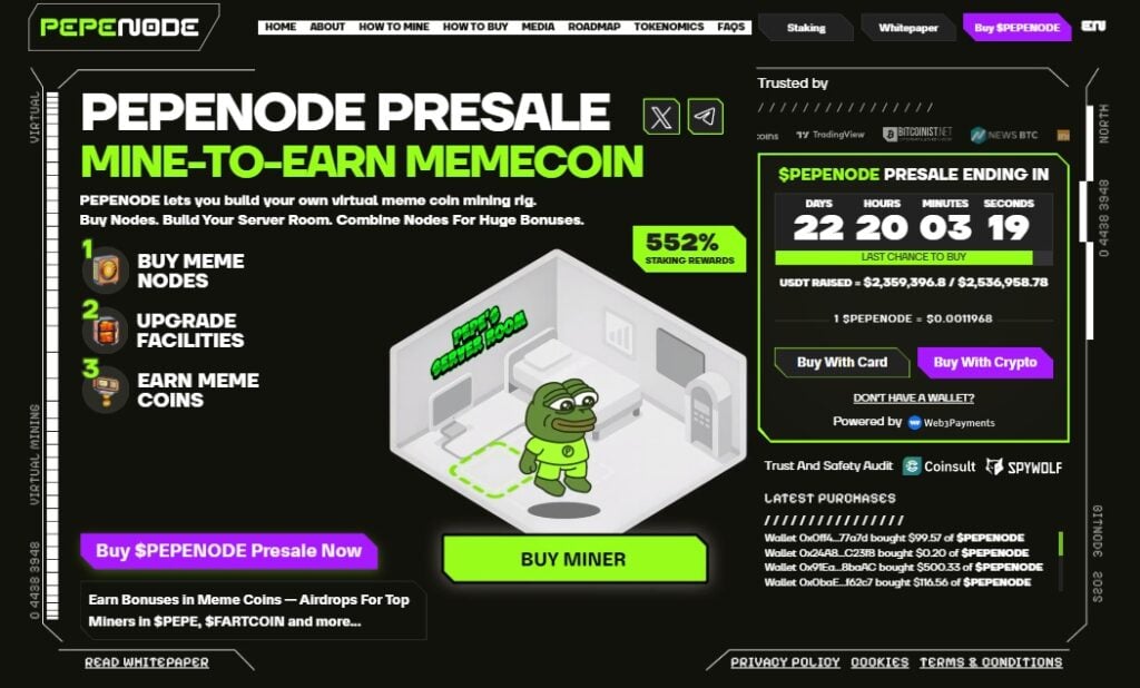 Pepenode has emerged asone of the best crypto to buy now, gaining attention for its innovative presale and in-game utility mechanics. The project combines mine-to-earn GameFi features with meme coin elements, allowing users to build virtual server rooms, purchase nodes, and engage in competitive mining for bonuses.