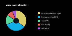 Sixty-nine percent of Verse tokens are reserved for the community in the form of a development fund and ecosystem incentives and rewards. The latter includes staking rewards, airdrops, yield for liquidity providers on the soon to be launched Verse DEX, and more. These incentive tokens will unlock on a block-by-block basis over seven years from a fixed supply of 210 billion.