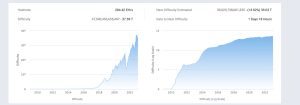 In just over a day, the Bitcoin network will see a difficulty increase of around 3.82%, according to current estimates. Right now, the mining difficulty is already at an all-time high (ATH) at 37.59 trillion, and with a 3.82% jump, it’s expected to be around 39.03 trillion. The number of hashes needed to mine a block is directly proportional to the difficulty level, which means each participating miner needs to perform 39.03 trillion hashes in order to mine a block at that level.