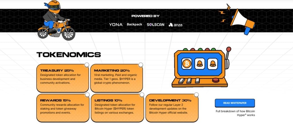 Bitcoin Hyper’s tokenomics are designed to drive adoption and ensure long-term sustainability. About 20% of funds are allocated to marketing to boost visibility, while 10% is reserved for exchange listings, demonstrating the project’s commitment to growth and community engagement.