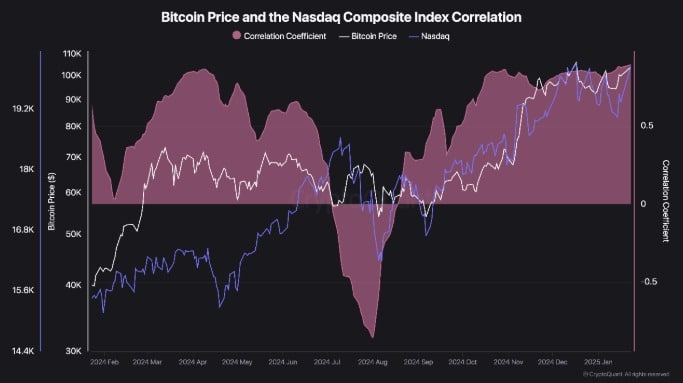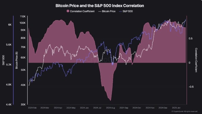 According to CryptoQuant, Bitcoin has remained closely tied to the performance of the U.S. stock market.