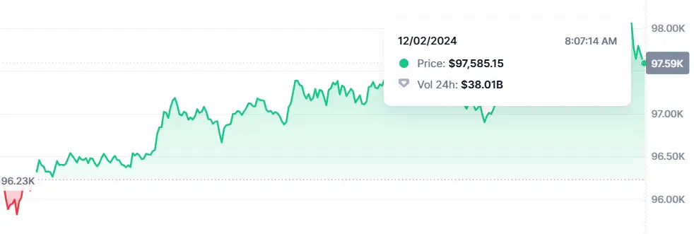 After a consistent dip last week, Bitcoin(BTC) shows signs of recovery at $97,585, even as BTC market share fell to 56.75%. Notably, in the early hours, Bitcoin briefly broke through the $98,000 mark.