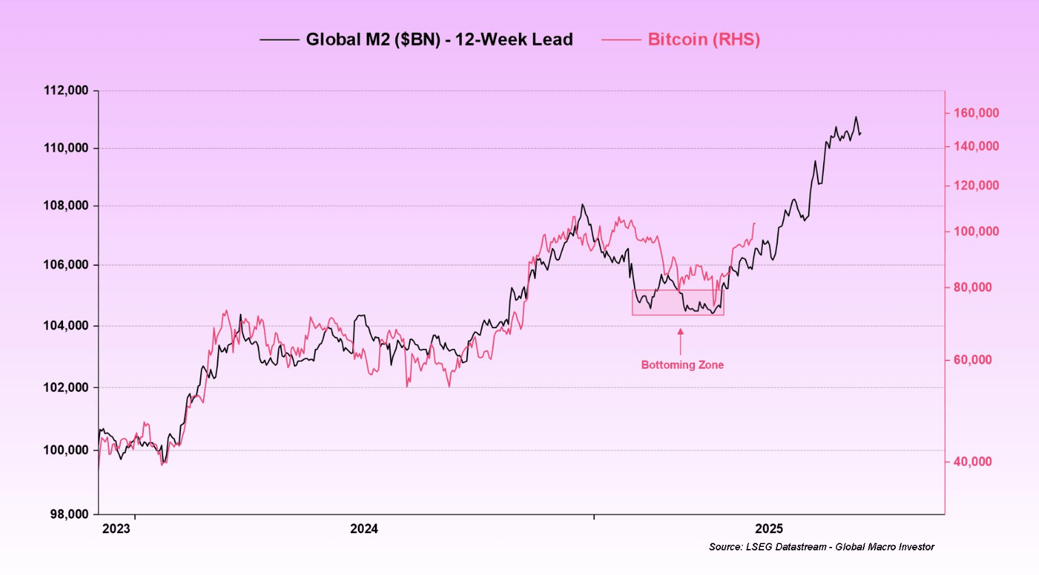 Bitcoin broke through the $100,000 level this week, reaching $104,000 before moderating to about $103,000. The move came after news that US and Chinese officials would sit down in Switzerland to talk about a possible trade agreement. Markets responded promptly. Optimism returned, and Bitcoin rose accordingly. But analysts are seeing beyond the headlines. Global liquidity is the real story.