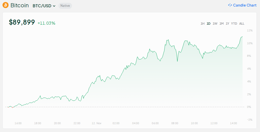 Bitcoin continues its surprising rally this week, testing another all-time high at $89k. On Tuesday, Nov. 12th, the digital asset surged beyond $89,0000, reflecting an 11.3% increase, while silver dipped by 2%, allowing Bitcoin to notch the 8th spot in the list.