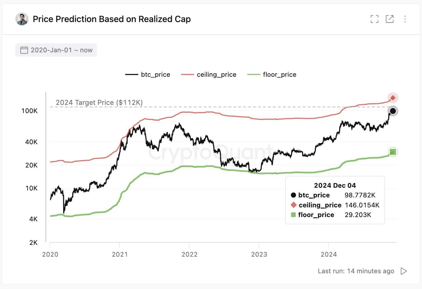 Bitcoin’s current price of $102K places it firmly in a growth phase, yet still far from the $146K ceiling price — a level often associated with “bubble” conditions.