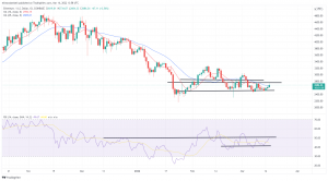 Looking at the chart, the RSI indicator shows this, with price strength moving beyond its resistance of 49.6 for the first time since March 9.
