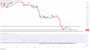 The world’s largest cryptocurrency by market capitalization bitcoin (BTC) was once again in the red on Saturday, as prices edged closer to a key support level.