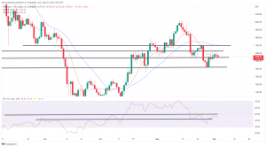 However, should the relative strength index (RSI,) which currently tracks at 35.77, fall to its own floor of 33.95, then this breakout will likely occur.