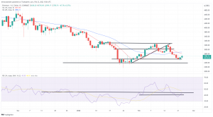 Price strength also climbed, with the 14-day RSI breaking beyond its own resistance point at 40, currently tracking at 43.35.