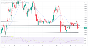 As can be seen from the chart, the uncertainty comes as the 14-day relative strength index (RSI) hovers below a resistance point at the 46.00 mark.