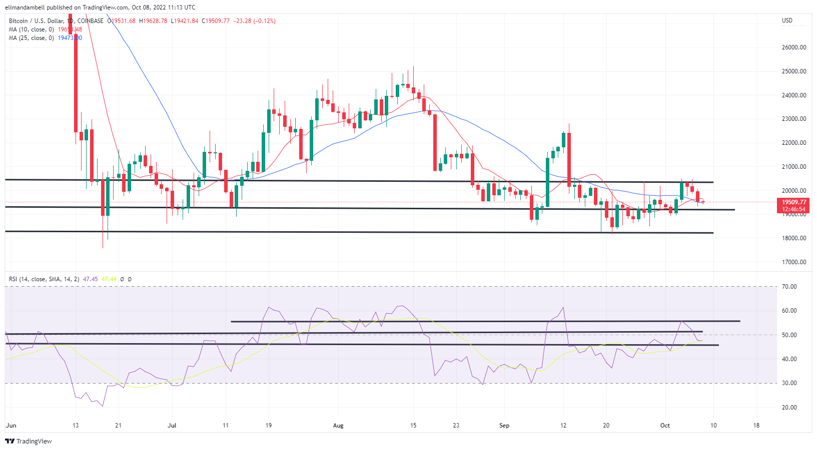 Following the better-than-expected jobs report, BTC/USD fell to an intraday low of $19,395.79 earlier in the day.