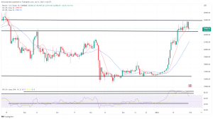 Bitcoin fell below $23,000 on Jan. 31, following a recent move to a five-month high over the weekend. Market volatility has since increased, as traders prepare for a big few days of economic data from the United States. The conference board will release its consumer confidence report later today, with the Federal Reserve holding its policy meeting on Wednesday. Ethereum also moved lower today.