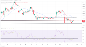 In addition to this, the 10-day (red) moving average is currently trending sideways, which seems to be a positive signal that recent downward pressure has eased, for now.