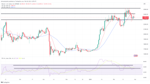 BTC/USD moved to an intraday low of $23,205.88 earlier in today’s session, which comes less than 24 hours after hitting a high of $23,857.89.
