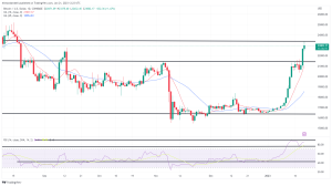 Today’s rally saw bitcoin jump to its highest level since August 24, when price at the time was trading at a top of $23,600.