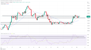 As of writing, the relative strength index (RSI) is tracking at 58.57, which is marginally below a ceiling of 59.00.