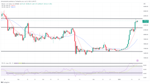 As of writing, BTC is trading at $22,876.55, which is marginally higher than Sunday’s peak.