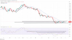 This comes as the ceiling of 48.50 on the 14-day RSI indicator was also held, with bulls deciding to exit their positions at that point.