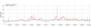 On Jan. 14, 2023, according to data from Dune Analytics, the combined transaction count for both L2 networks was around 1.32 million transactions, compared to the 1.10 million transactions settled on the Ethereum chain. Ethereum still processes a significant number of transactions per day compared to most blockchains. Since June 17, 2020, Ethereum has typically processed over a million transactions per day. However, a few other crypto networks settle more transactions than Ethereum does, such as XRP and Polygon.