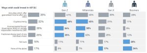 In addition, “More than 4 in 10 Gen Z and millennial workers wish they could invest in annuities and cryptocurrency in their 401(k),” the report adds.