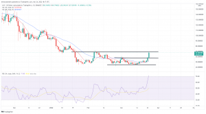 After breaking out of one ceiling, today’s surge which saw prices climb by as much as 25%, rising to yet another point of resistance.