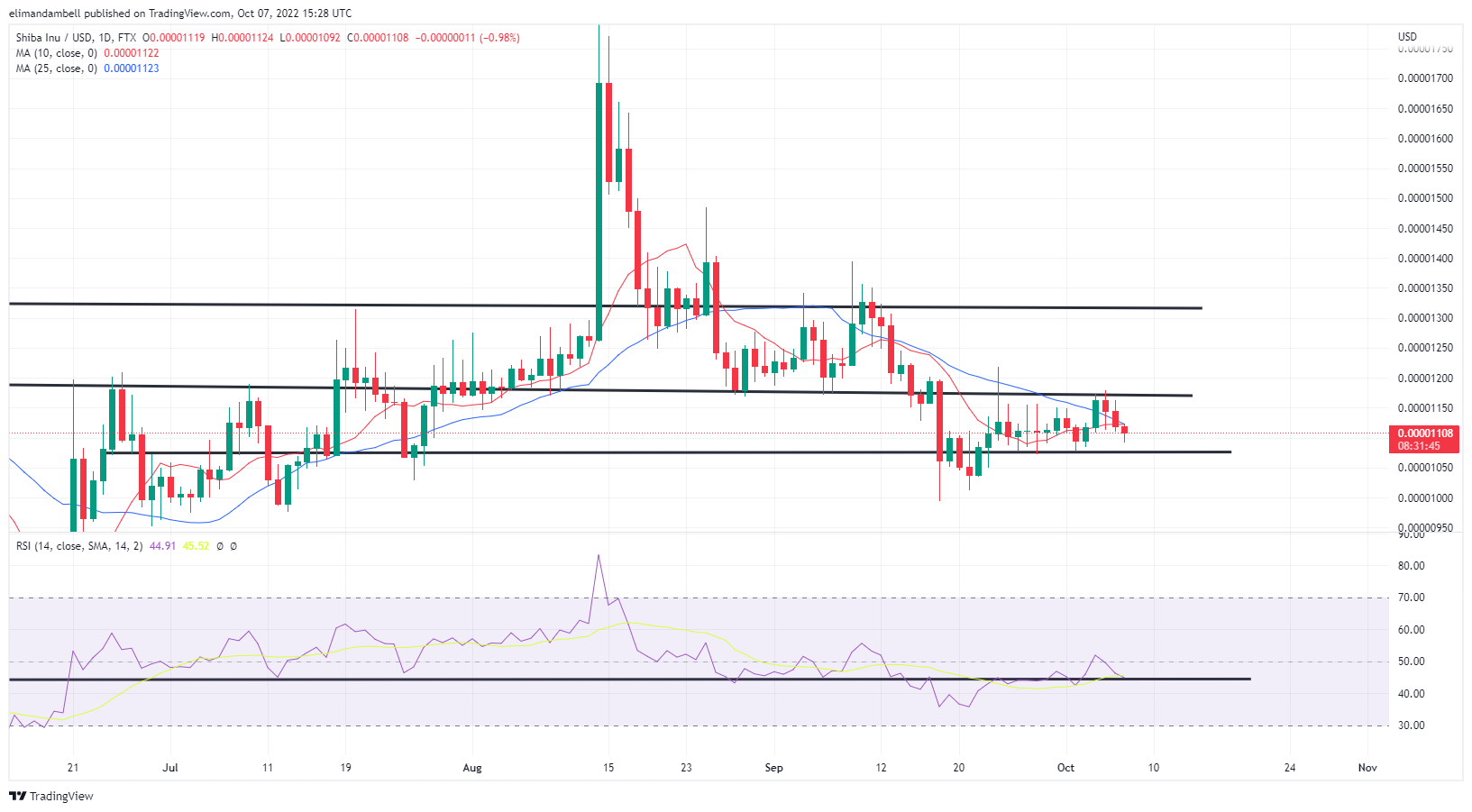 Following a high of $0.00001138 on Thursday, SHIB/USD slipped to a bottom of $0.000011 earlier in the day.