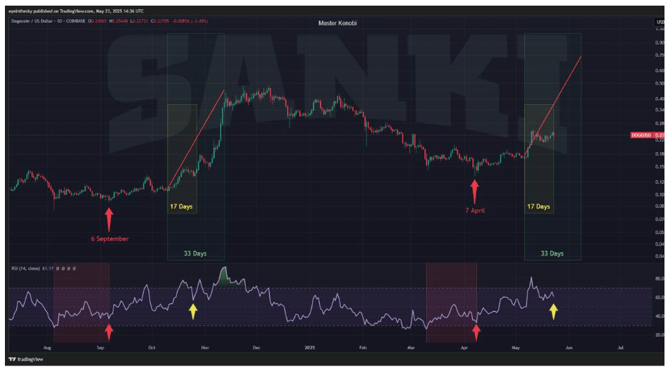 In an X post, crypto analyst Trader Tardigrade stated that Dogecoin’s uptrend remains pretty much solid. His accompanying chart showed that the meme coin still has enough room to rally to the much-anticipated $1 price level. In another analysis, the analyst stated that DOGE will likely break the recent high at $0.25.