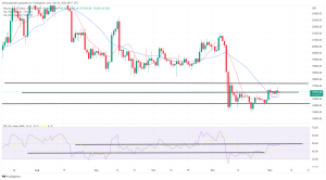 Should a breakout occur, it is likely that BTC will move back towards the $17,400 point in upcoming days.