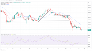This move took ethereum to a fresh two-week low, with prices dropping to their lowest point since May 12, with a new support point being formed.