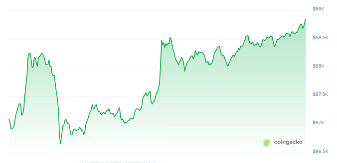 BTCUSD trading at $88,798 on the 24-hour chart: TradingView.com