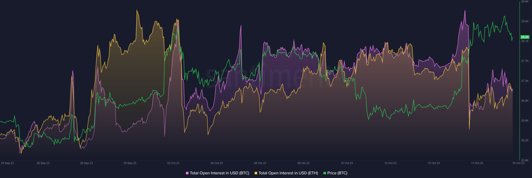The recent rally, though short-lived, has brought about interesting developments in the derivatives market. While Bitcoin’s open interest (OI) witnessed a significant drop, Ethereum saw an increase in its OI.