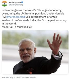 Many people in India welcome the news of the Indian economy overtaking the British economy. Indian parliament member Kartik Sharma tweeted: “India emerges as the world’s 5th largest economy, overturning the U.K. from its position. Under Hon’ble PM Narendra Modi Ji’s development-oriented leadership, we’ve made India the 5th largest economy in the world.”