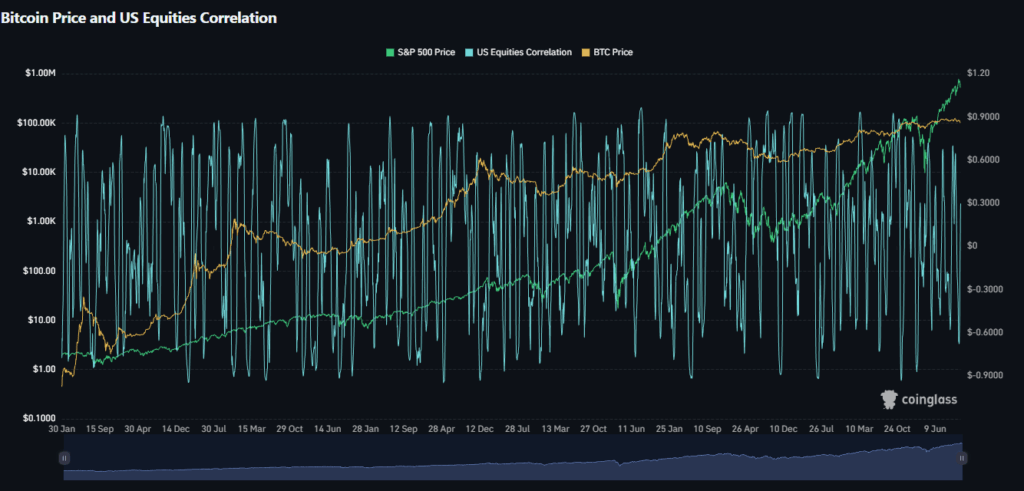 Figure 4 – 30-day rolling correlation between Bitcoin and S&P 500 (source Coinglass.com)