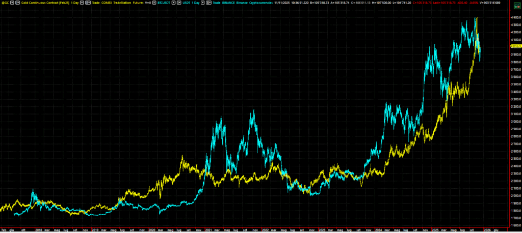 For several years now, a significant part of the debate in the cryptocurrency world has revolved around a particularly intriguing concept: Bitcoin is considered the new gold, its digital version. This comparison is not accidental. Both assets are portrayed as scarce goods, independent of central bank decisions, and potentially capable of protecting wealth from the erosion of purchasing power. This image has achieved great communicative success, both among professional investors and the public approaching the crypto world for the first time. However, when this narrative is compared with market data and more robust empirical analyses, elements emerge that call for greater realism.