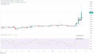 Shiba inu’s (SHIB) 50% rise on Tuesday, seems to have inspired LEO bulls, who moved to push prices up by 61% in today’s session. The move comes as crypto markets consolidated yesterday’s gains.