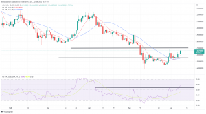 One resistance has already been eclipsed, as the RSI moved beyond its ceiling at 54.50, and hit a two-month peak.