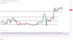 Following a high of $79.20 on Wednesday, LTC/USD moved to a low of $74.82 earlier in the day’s session.